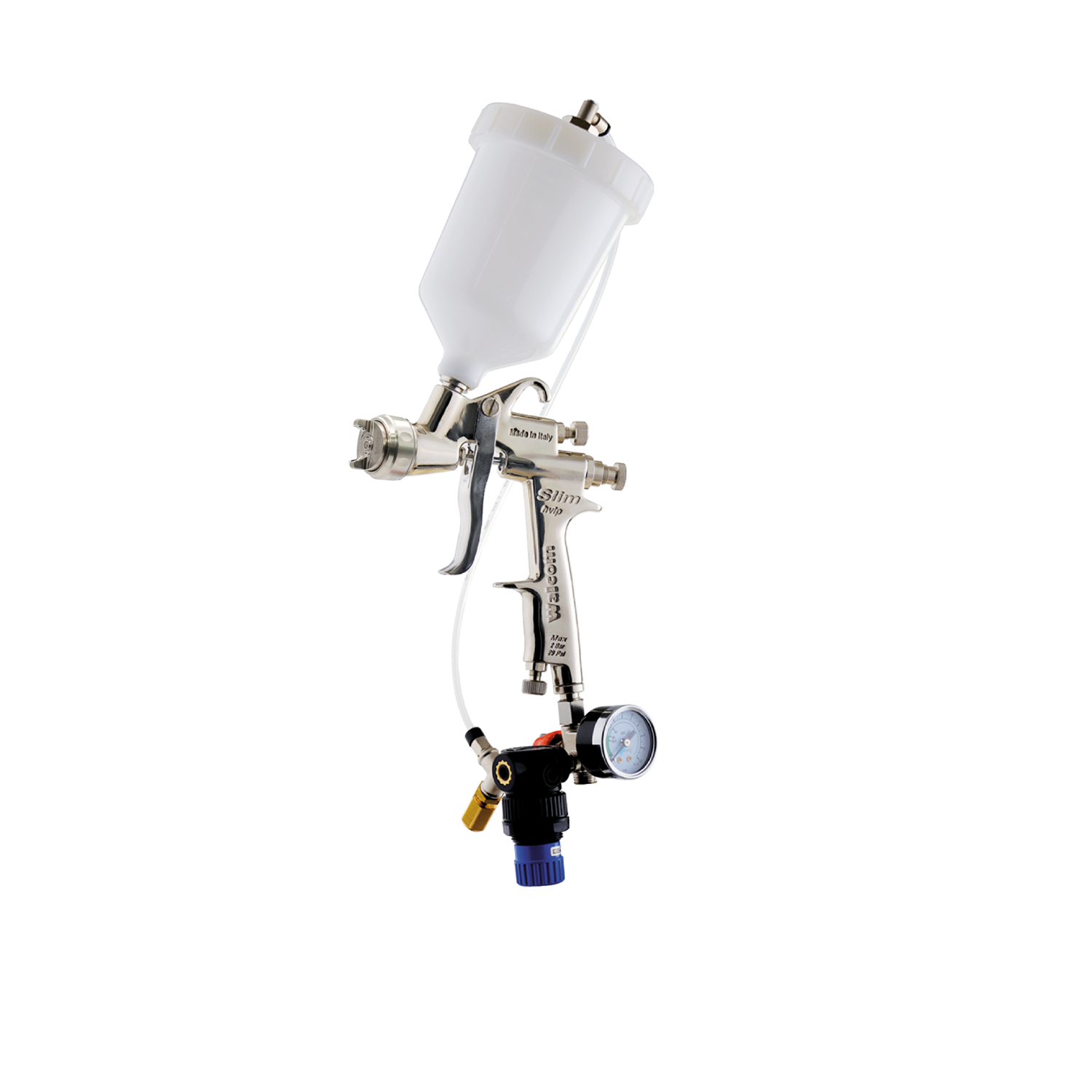 SLIM series, made from aluminum diecasting, was the previous model of the new KOMBAT SERIES made of magnesium and Kevlar, available as THE or HVLP version, it was a spraygun that represented the ideal compromise between quality and price for primer application, sealers, industrial applications, and woodworking industry.